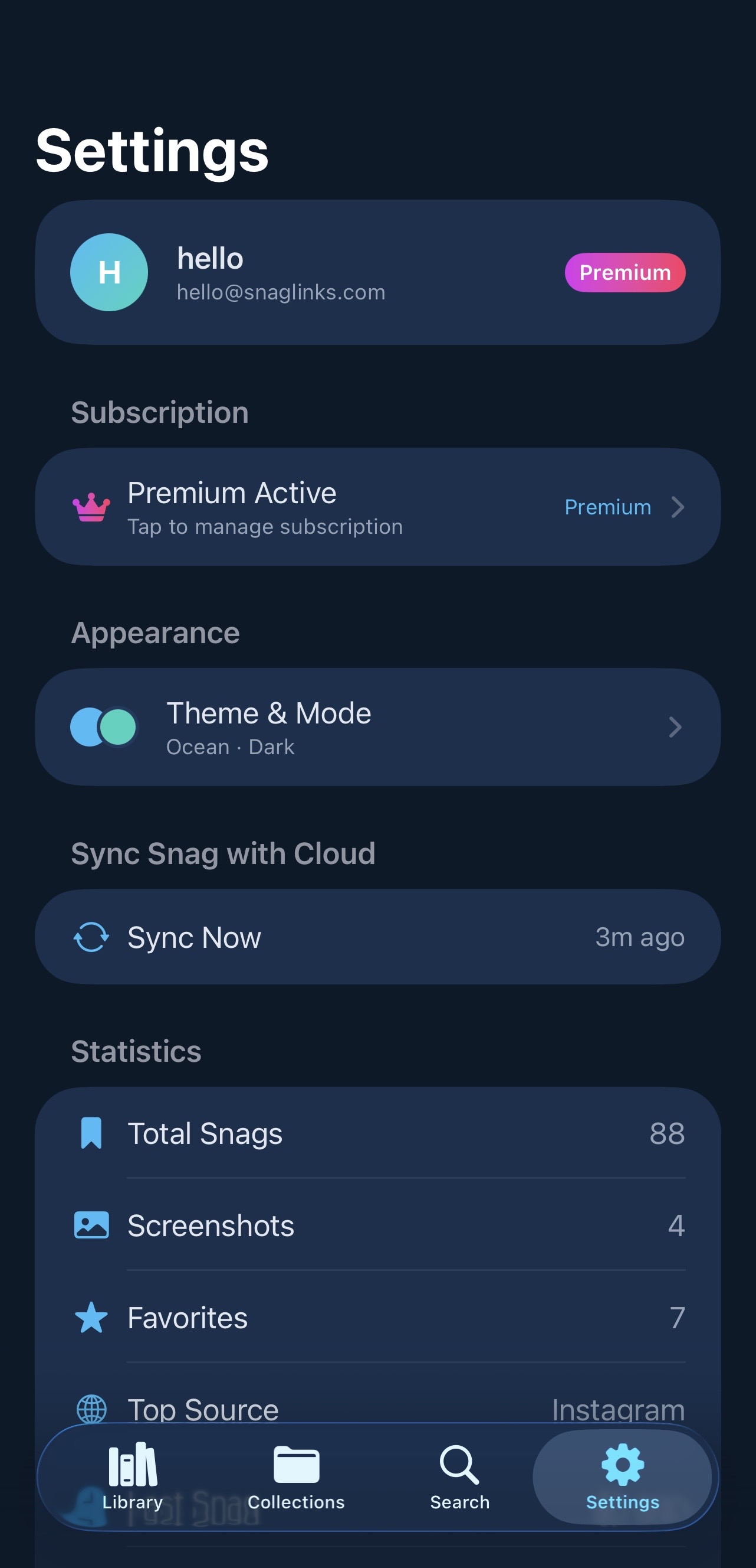 The free plan gives you 30 saves and the full Snag experience — collections, favorites, screenshot OCR, share collections, and access on iOS, Android, and the web. No credit card required, no time limit.